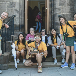 From there, the pilgrimage continued in a simpler fashion to St. Peter the Apostle Church in New Brunswick, the oldest Church in the Diocese of Metuchen, right next to the campus of Rutgers. There was Mass at 11 am celebrated by Fr. Jason Pavich, administrator of the parish, and preached by Fr. Pierre Toussaint Guiteau, CFR, who is a chaplain to the Seton route during the second week.