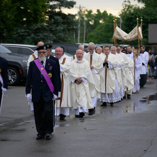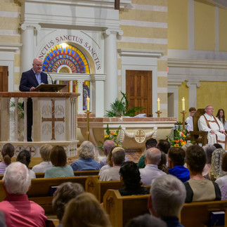 At 6 pm, there was Mass in joint celebration of the National Eucharistic Pilgrimage's coming to St. Elizabeth Ann Seton Parish and of Father Landry's 25th anniversary. The Church was standing room only and there was an overflow room with about 100 people who watched the Mass on a large screen.