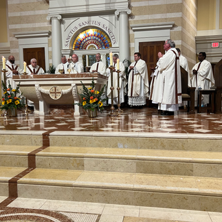 Bishop Fernandes also congratulated and thanked Father Landry's family, which was present at the Mass, and thanked Father Leo Connolly and the staff and parishioners of St. Elizabeth Ann Seton Parish for their hospitality to the National Eucharistic Pilgrimage and to all those in attendance from throughout the Diocese to participate in the pilgrimage or to help celebrate Father Landry's anniversary.