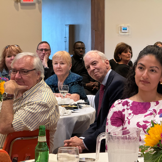 At lunch time, the parish hosted in the parish hall a great luncheon in celebration of Father Landry's silver jubilee. The luncheon was prepared by parish volunteers. Father Landry's family and about 30 friends from across the country likewise traveled for the celebration. Father Landry's identical twin Scot served as emcee for the light program, which involved an invocation by Father Tad Pacholczyk, Father Landry's classmate from the Diocese of Fall River who was also celebrating his 25th anniversary; a benediction by Father Gerald Murray, pastor of Holy Family Church in Manhattan with whom Father Landry lived for seven years while he worked at the Permanent Observer Mission of the Holy See to the United Nations; a welcome by Marlon de la Torre on behalf of Bishop Earl Fernandes of the Diocese of Columbus; an original song by the Seton Route Pilgrims in honor of Father Landry's anniversary; and presentations by the Seton Route Pilgrims and remarks by the Landry twins.