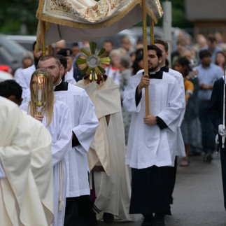 After Mass, there was a Eucharistic procession around extensive campus of the parish.