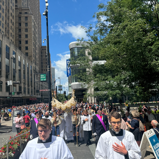 After Mass, Archbishop Schnurr incensed the Blessed Sacrament and a Eucharistic Procession formed. More than 2000 processed through downtown Cincinnati to Fountain Square where there was held a "Jesus is Here" Eucharistic Festival.
