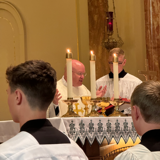 At the end of the Holy Hour, during which Seton Chaplain Father Giuseppe Siniscalchi, CFR, St. Michael's pastor Father Aaron Jenkins, and Father Landry heard questions of a full Church. At the end of the Holy Hour, Father Landry did benediction and left Jesus exposed for adoration throughout the night.
