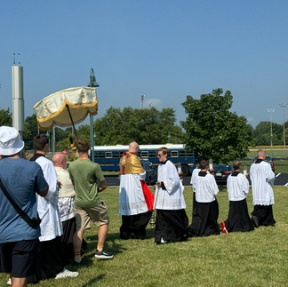In his homily, Father Landry discussed how the National Eucharistic Revival involves both elements of the Eucharistic Pilgrimage as well as Eucharistic Congress, not just in terms of the spectacular expressions of them in Indiana during these days but their ordinary expression. Mass is the daily "congress" or "coming together" of Jesus' disciples and pilgrimage is the nature of the Church's and every individual's life. Parishes are meant to be "hostels" or "stations" to refresh us along the journey. The National Eucharistic Pilgrimage and Congress put into relief this double nature of ecclesial and Christian life.