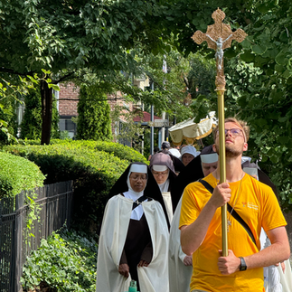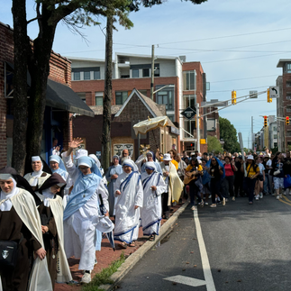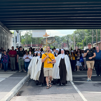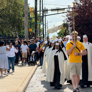 The day began with Morning Prayer at the Church of St. Philip Neri in Indianapolis, led by Seton Chaplain Father Roger Landry, followed by a period of Eucharistic Adoration. Then there was a three-mile Eucharistic Procession to St. John the Evangelist Church in which the Blessed Sacrament was carried by Seton Chaplain Giuseppe Siniscalchi, CFR, St. Philip Neri pastor Father Jeffrey Dufresne and Seton Chaplain Father Roger Landry.
