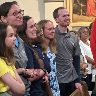 When they arrived at St. John the Evangelist Church, there was a large crowd outside waiting. Father Landry gave a benediction from the steps of the Church on all those who had accompanied them and those who were awaiting them. After entering the Church with a small group of pilgrims, there was a period of adoration and another benediction.